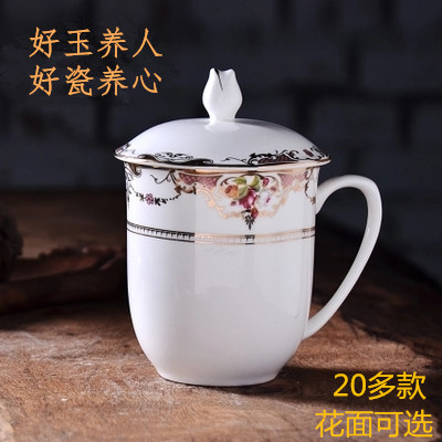 唐山骨瓷办公杯盖杯会议杯款陶瓷杯日式马克杯带盖茶杯实用礼品热门设计联盟服务商