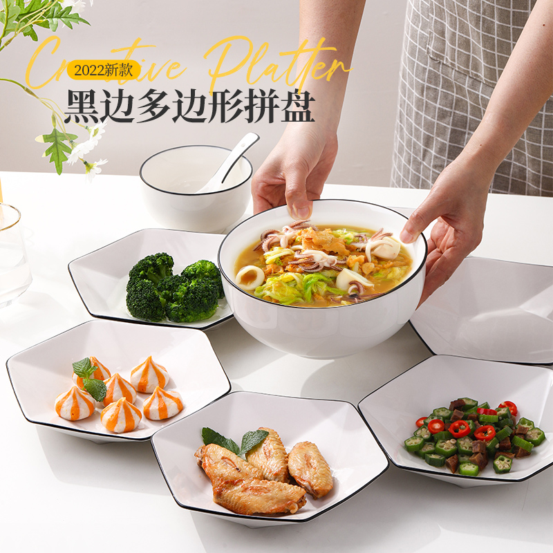 拼盘餐具组合陶瓷碗盘家用不规则创意家庭拼盘网红碗碟套装餐具热门设计联盟服务商