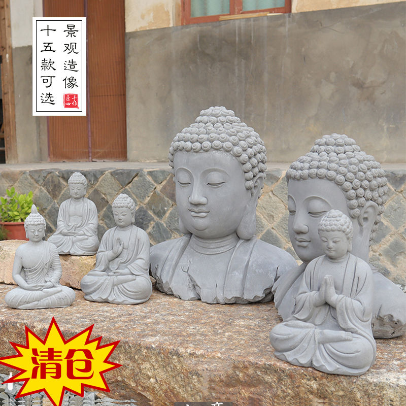 中式禅意水泥佛头像鱼缸微景观造景家居玄关桌面人物装饰品摆件热门设计联盟服务商