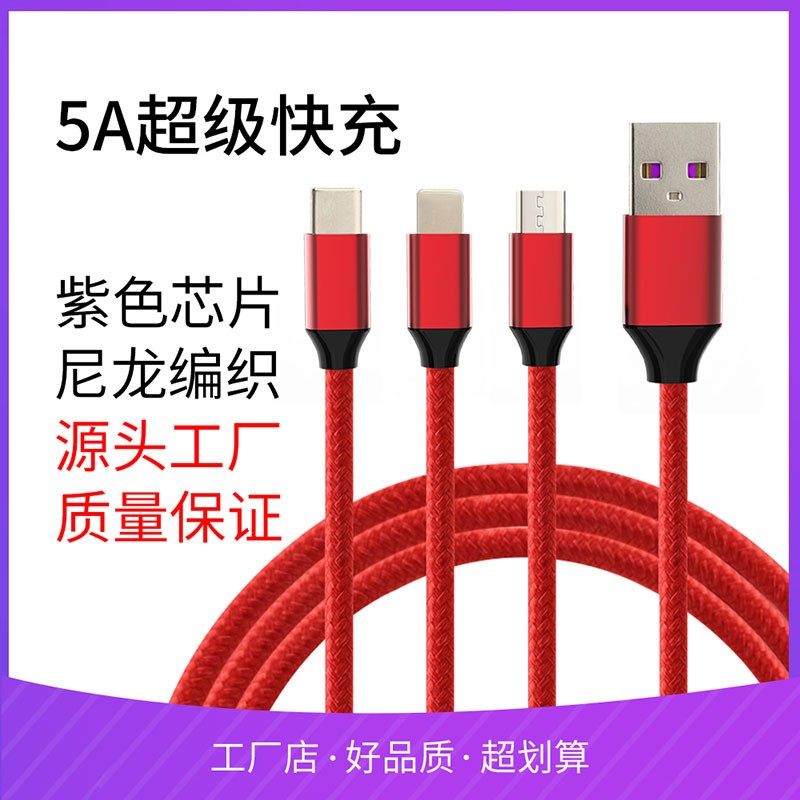 一拖三数据线5A快充适用苹果安卓华为type-c三合一编织充电线定制热门设计联盟服务商