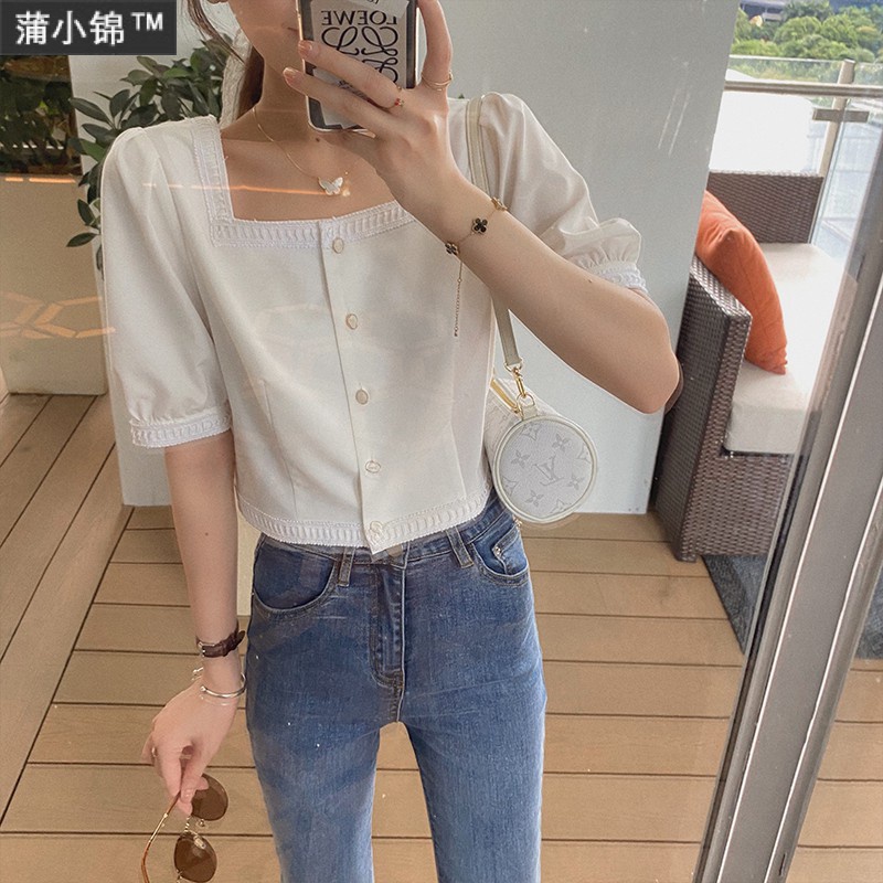蒲小锦 夏季蕾丝衫上衣女短袖设计感小众小清新遮肚子热门设计联盟服务商
