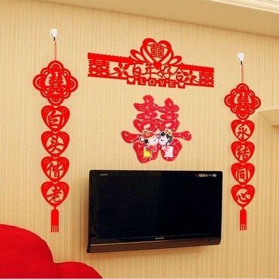 婚房布置用品房门喜字贴拉花对联结婚新房装饰品门帘客厅卧室创。热门设计联盟服务商