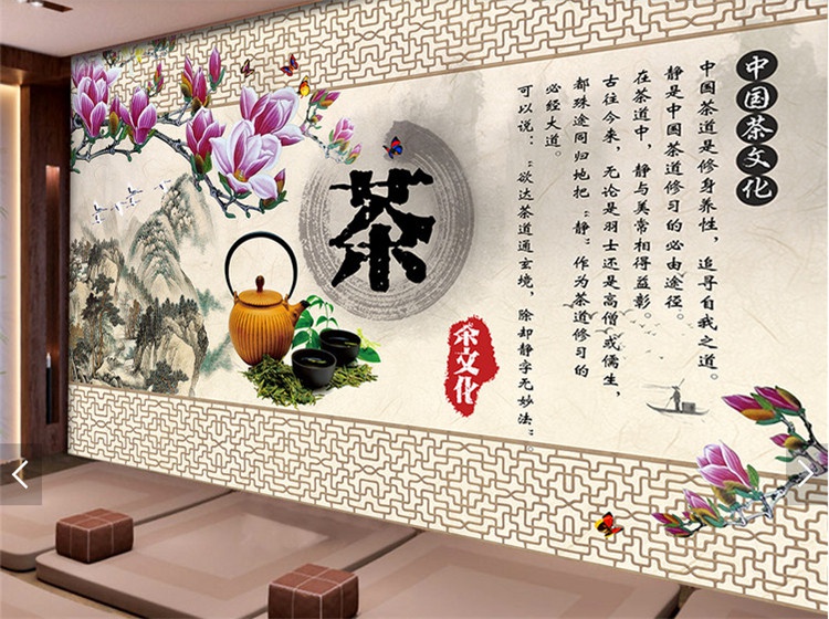 手绘中国风茶道茶文化壁纸茶楼茶馆茶庄茶店餐饮背景墙装饰墙布热门设计联盟服务商