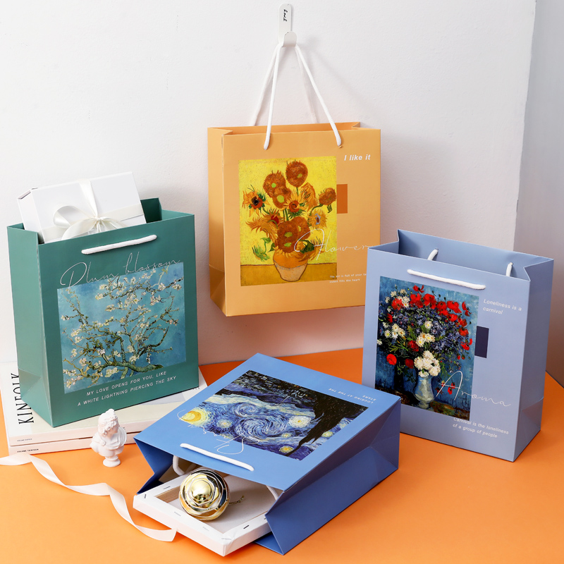 ins名画设计礼品袋生日回礼袋服装包装袋创意礼物袋子手提袋纸袋热门设计联盟服务商