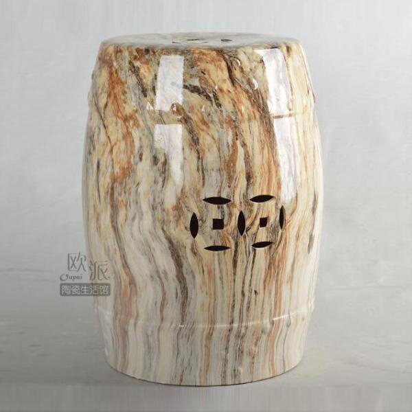 新中式陶瓷凳子软装设计鼓凳边几坐墩装饰椅大理石纹梳妆换鞋圆。热门设计联盟服务商