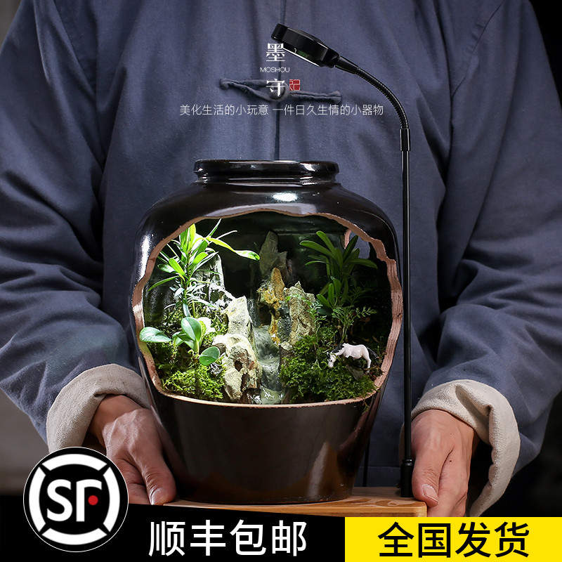 陶瓷流水加湿微景观植物盆景办公会所装饰客厅桌面摆h件招财器热门设计联盟服务商
