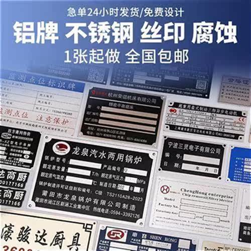 丝印腐蚀烤漆金属不锈钢铭u牌x定做标牌UV数码彩印号码编铝标牌机热门设计联盟服务商
