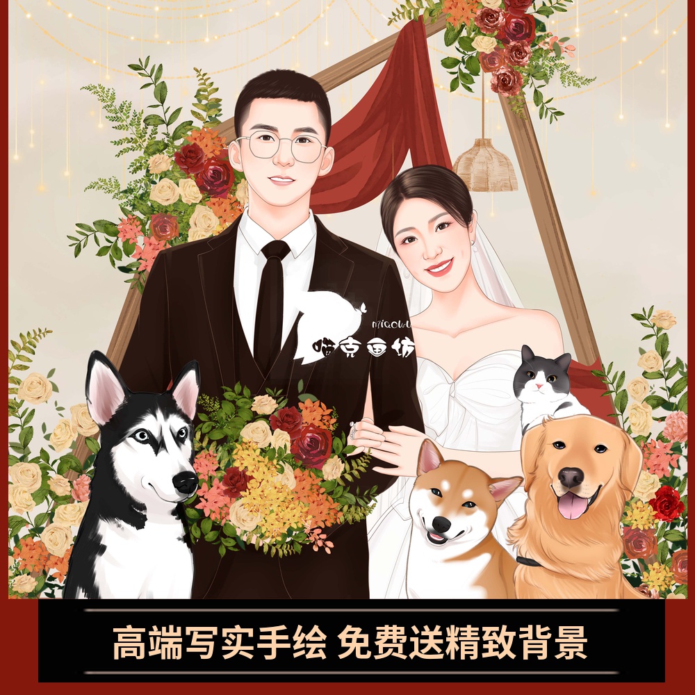 婚纱照手绘头像写l实唯美漫画人物卡通婚礼请帖设计情侣头像定制.热门设计联盟服务商