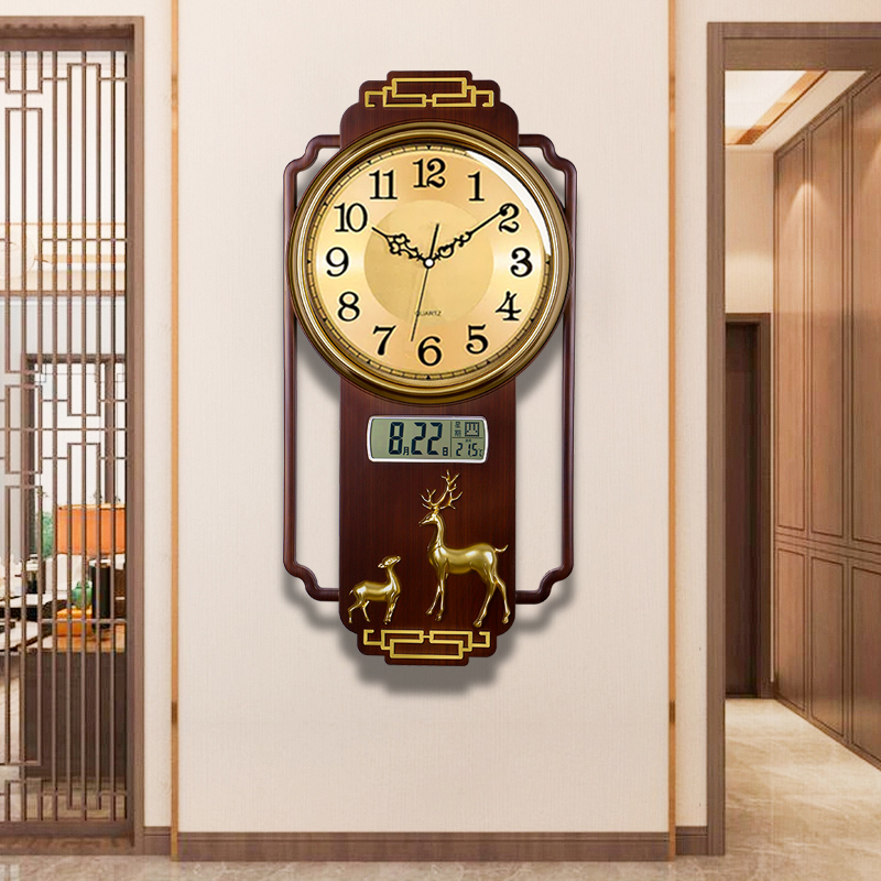 新中式挂钟客厅家用时尚网红挂表创意石英钟日历大气时钟挂墙钟表热门设计联盟服务商