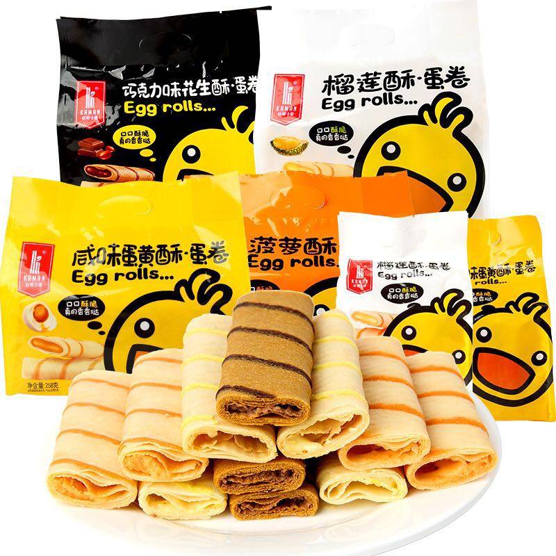网红咔啰卡曼香脆夹心花生酥蛋卷饼干,营养早餐午茶甜点零食食品