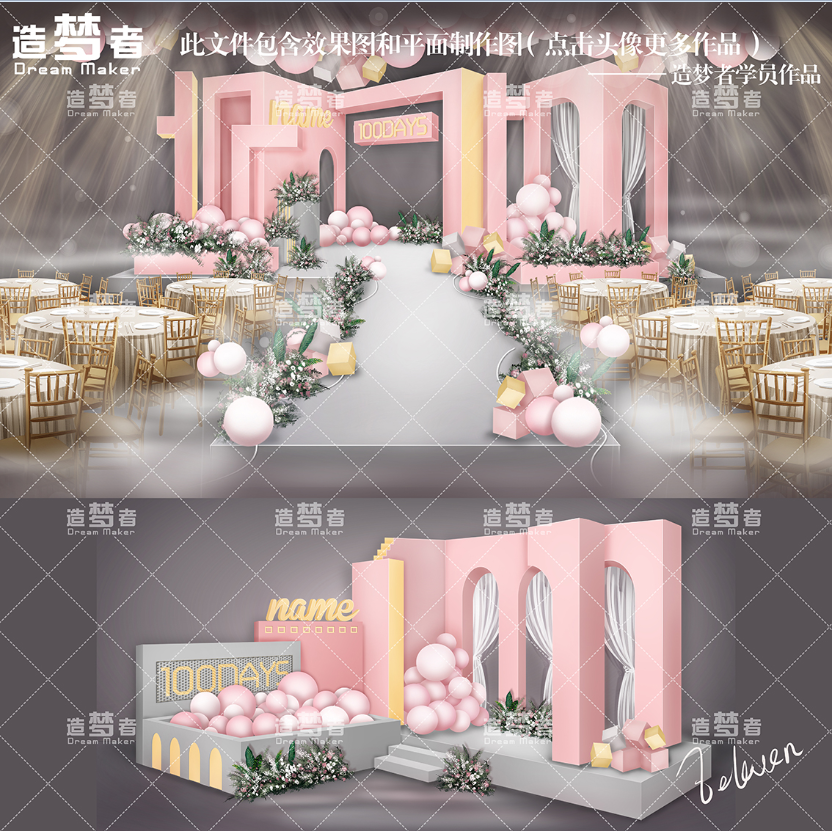 粉色系婚礼 宝宝宴 满月宴 生日宴设计 婚礼设计 婚礼效果图2098热门设计联盟服务商